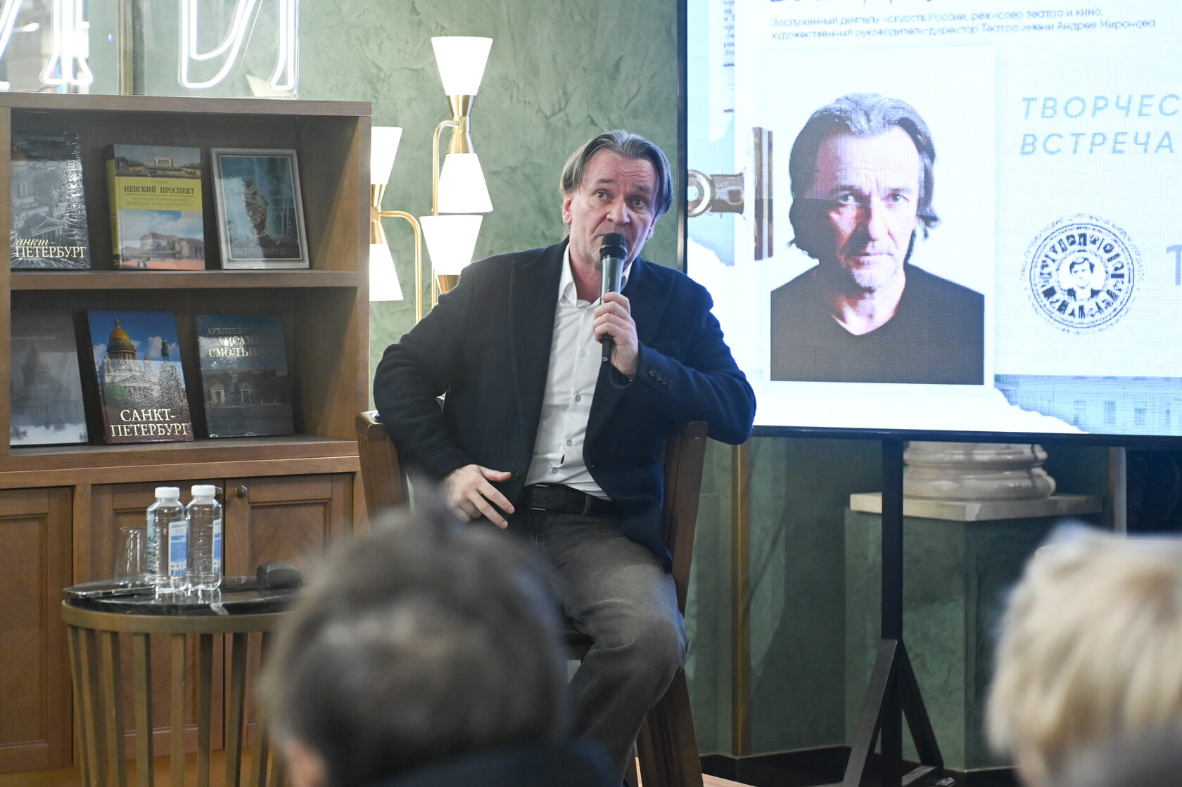 Одной из центральных тем встречи стали недавние премьеры в Театре имени Андрея Миронова «Кукольный дом» Вячеслава Комарницкого и «Живой труп» Юрия Цуркану. В зале был исполнитель главной роли Феди Протасова в «Живом трупе» Алексей Морозов.