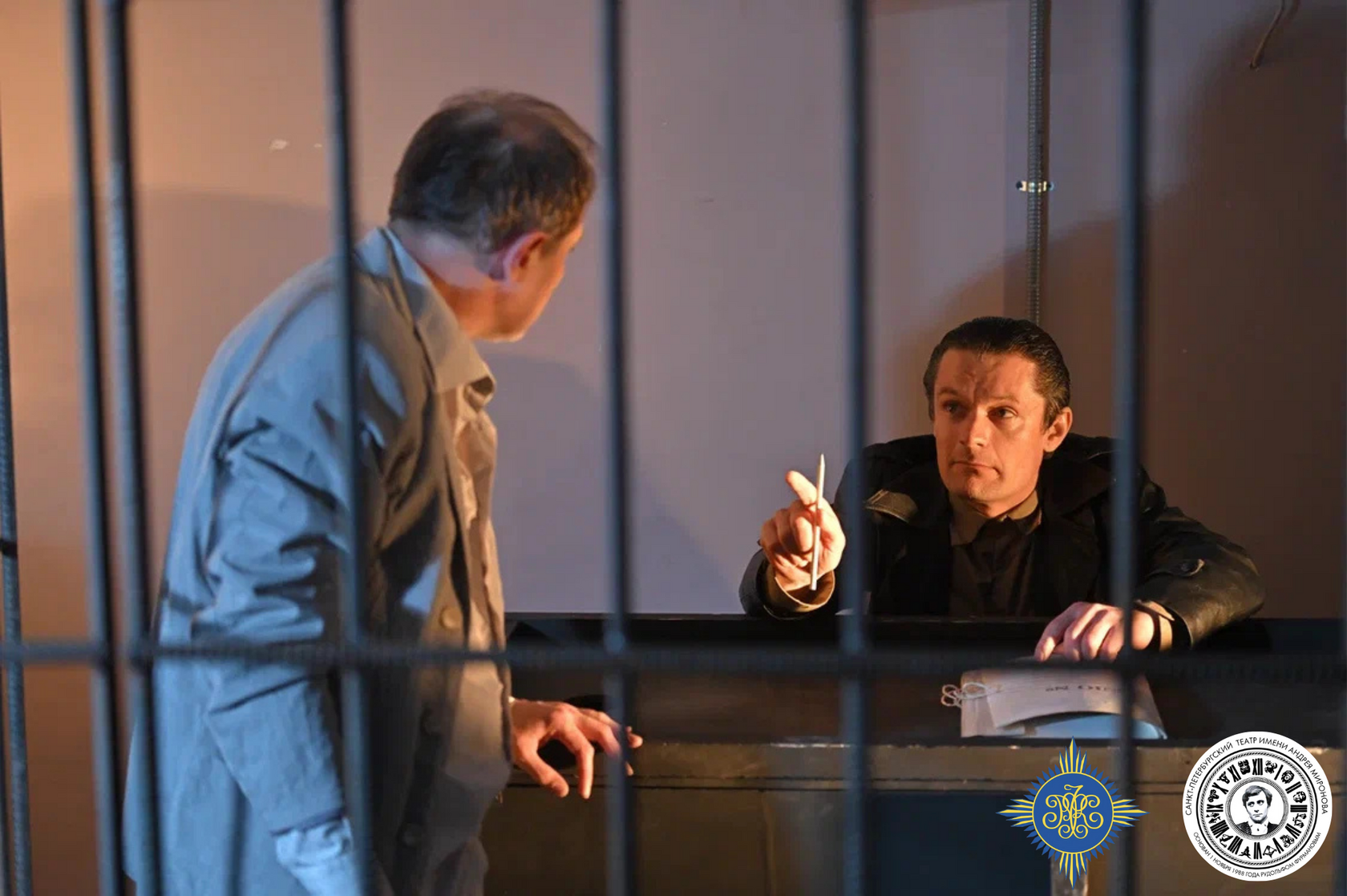 С ним мы уже были знакомы по другому спектаклю, а вот с Александром Васильевым, воплотившим роли Следователя и других персонажей, я работал впервые. Он удивительно точный артист со своим мышлением, органикой и харизмой. Нам пришлось немного позже начать даже, чтобы поработать с Сашей, именно поэтому мы показались позже других, но рад, что настоял на своем выборе артистов. А так — те же 10 репетиций, те же сроки.